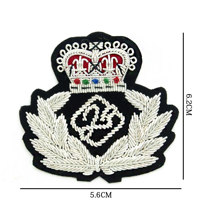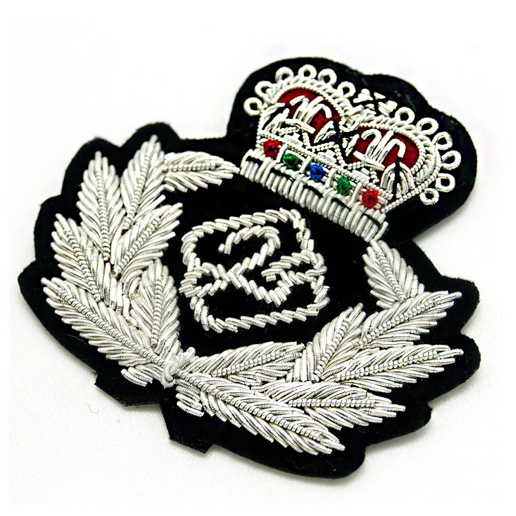 印度丝绣花章,早起源于印度,故又称印度丝徽章、铜丝徽章、弹簧丝徽章、印度绣花章、金属刺绣章等,采用印度特有的金属线为主要材料,并用传统的手工艺绣花,一针一线刺绣而成。其手工精细,令人叹为观止,绣出来的产品高档华丽,层次分明。